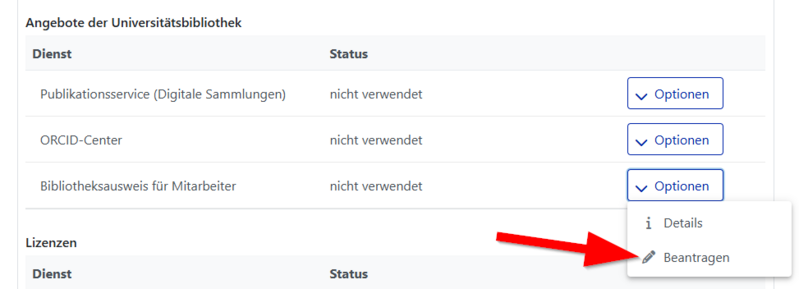 | Description | Screenshot Serviceportal - Bibliotheksausweis für Mitarbeitende beantragen |