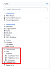 | Description | Screenshot Bitwarden - Sammlungen in der Tresorübersicht |