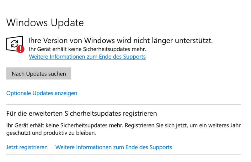 | aktuell | 09:30, 15. Okt. 2025 | 997 × 644 (197 KB) | Jnk (Diskussion | Beiträge) | {{Information | description = Screenshot Windows 10 - Windows Update ohne Sicherheitsupdates | source = Screenshot | date = 15.10.2025 | author = Benutzer:jnk | permission = {{PD-user|jnk}} }}Kategorie:Screenshots |
