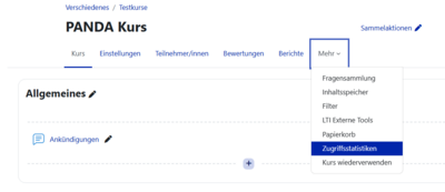 - klicken Sie dann im Kursmenue auf "Mehr" und wählen Sie dann "Zugriffsstatistiken" aus.