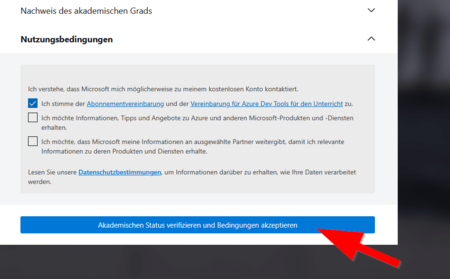 - Klicken Sie anschließen auf "Akademischen Status verifizieren und Bedingungen akzeptieren".