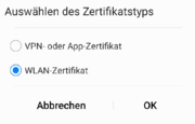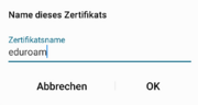 | 07:56, 19. Dez. 2025 | Eduroam-android-02.png (Datei) | 49 KB | {{Information | description = Screenshot Android - Netzwerkzertifikat installieren | source = Screenshot | date = 19.12.2025 | author = Benutzer:jnk | permission = {{PD-user|jnk}} }}Kategorie:Screenshots | 1 | |