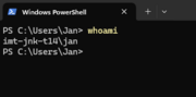 | 14:19, 8. Okt. 2025 | Benutzername-Windows-03.png (Datei) | 6 KB | {{Information | description = Screenshot Windows 11 - Powershell whoami | source = Screenshot | date = 08.10.2025 | author = Benutzer:jnk | permission = {{PD-user|jnk}} }}Kategorie:Screenshots | 1 | |
