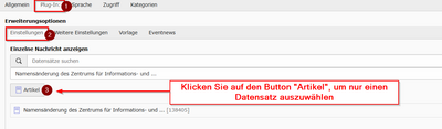 - Artikel auswählen: Im Tab „Plug-In“ unter „Einzelne Nachricht anzeigen“ den gewünschten Artikel auswählen.