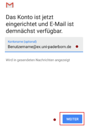 | 15:26, 22. Aug. 2019 | Exchange einrichten mit Android 12.png (Datei) | 68 KB | {{Information | description = Screenshot aus Android - Gmail Exchange einrichten 9 | source = Screenshot | date = 22.08.2019 | author = Benutzer:jnk | permission = {{PD-user|jnk}} }}Kategorie:Screenshots | 1 | |
