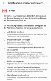 | 15:25, 22. Aug. 2019 | Exchange einrichten mit Android 11.png (Datei) | 164 KB | {{Information | description = Screenshot aus Android - Gmail Exchange einrichten 8 | source = Screenshot | date = 22.08.2019 | author = Benutzer:jnk | permission = {{PD-user|jnk}} }}Kategorie:Screenshots | 1 | |