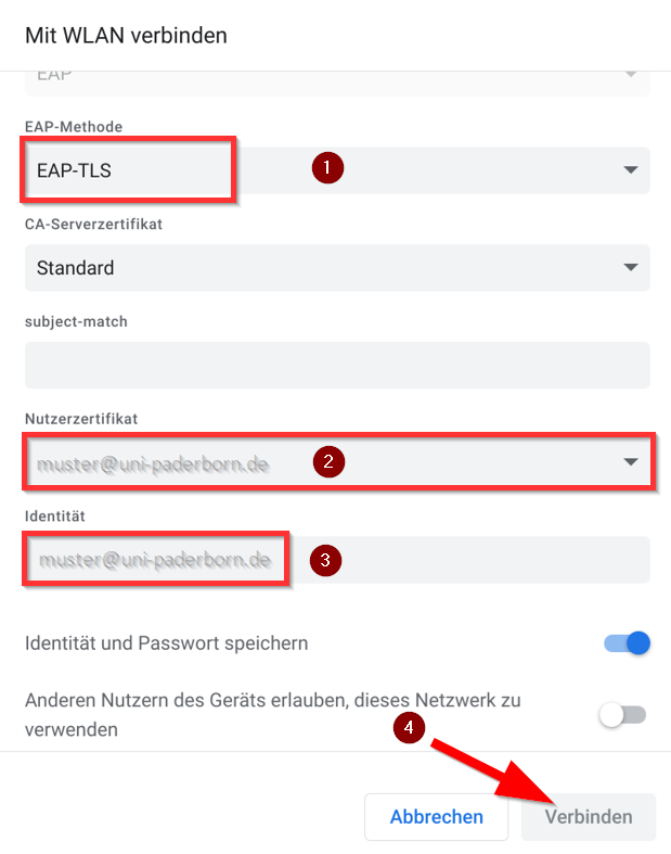 | aktuell | 14:01, 2. Okt. 2023 | 791 × 979 (40 KB) | Jnk (Diskussion | Beiträge) | {{Information | description = Screenshot ChromeOS - Eduroam einrichten | source = Screenshot | date = 02.10.2023 | author = Benutzer:jnk | permission = {{PD-user|jnk}} }}Kategorie:Screenshots | |