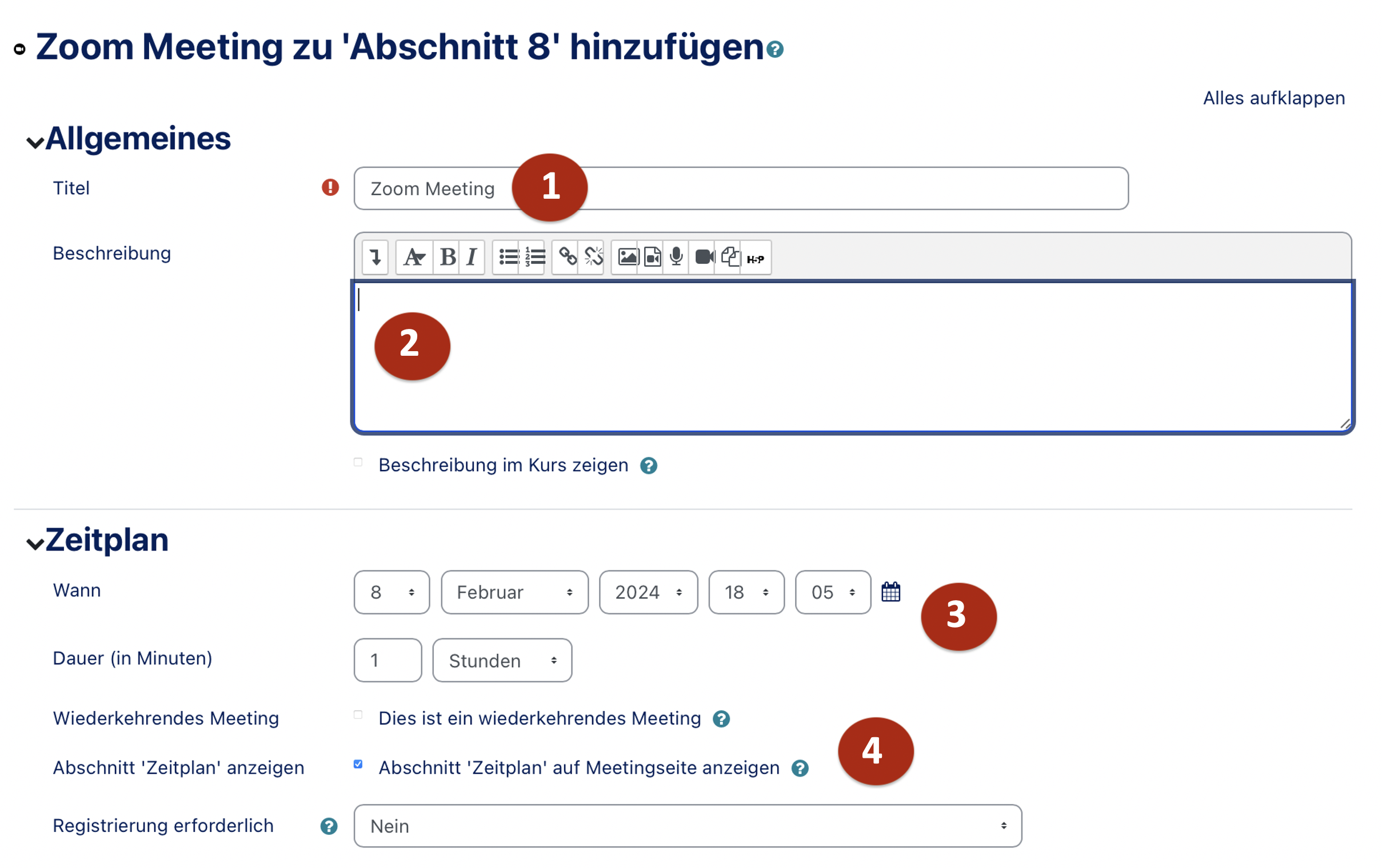 | aktuell | 13:18, 23. Jul. 2025 | 922 × 672 (103 KB) | Mfunk (Diskussion | Beiträge) | {{Information | description = Screenshot Moodle Zoom Einstellungen | source = Screenshot | date = 23.07.2025 | author = Benutzer:mfunk | permission = {{PD-user|mfunk}} }}Kategorie:Screenshots | |