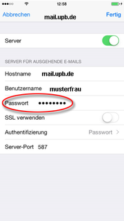 | 10:35, 17. Jun. 2016 | Screenshot iOS - Mail - SMTP-Server Passwort ändern.png (Datei) | 29 KB | {{Information | description = iOS Einstellungen SMTP-Server Passwort ändern | source = Screenshot | date = 17.06.2016 | author = Benutzer:beyonder | permission = {{PD-user|beyonder}} }}Kategorie:Screenshots | 1 | |