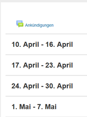 | 15:15, 16. Mai 2017 | Screenshot PANDA Kurseinschreibung Architektur 04.png (Datei) | 25 KB | {{Information | description = Screenshot PANDA | source = Screenshot | date = 16.05.2017 | author = Benutzer:beyonder | permission = {{PD-user|beyonder}} }}Kategorie:Screenshots | 1 | |