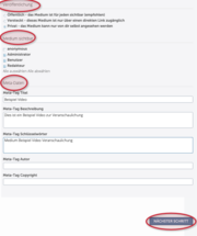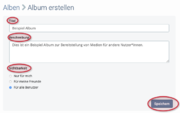 | 15:35, 2. Mai 2019 | Videoportal Album 2.png (Datei) | 26 KB | {{Information | description = Screenshot of ViMP Album erstellen zweiter Schritt | source = Screenshot | date = 02.05.2019 | author = Benutzer:kschierm | permission = {{PD-user|kschierm}} }}Kategorie:Screenshots | 1 | |