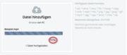 | 14:16, 2. Mai 2019 | V Medien Hochladen.png (Datei) | 44 KB | {{Information | description = Screenshot of ViMP Medien hochladen | source = Screenshot | date = 02.05.2019 | author = Benutzer:kschierm | permission = {{PD-user|kschierm}} }}Kategorie:Screenshots | 1 | |