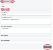 | 14:02, 3. Mai 2019 | Videoportal Editor Basis.png (Datei) | 65 KB | {{Information | description = Screenshot of ViMP Editor Basisinformationen | source = Screenshot | date = 03.05.2019 | author = Benutzer:kschierm | permission = {{PD-user|kschierm}} }}Kategorie:Screenshots | 1 | |