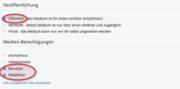 | 15:06, 2. Mai 2019 | V öffentlich Benutzer.png (Datei) | 40 KB | {{Information | description = Screenshot of ViMP Zugriffseinstellung öffentlich für Benutzer | source = Screenshot | date = 02.05.2019 | author = Benutzer:kschierm | permission = {{PD-user|kschierm}} }}Kategorie:Screenshots | 1 | |