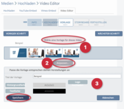 | 14:08, 3. Mai 2019 | Videoportal Editor Vorlage.png (Datei) | 73 KB | {{Information | description = Screenshot of ViMP Editor Vorlage | source = Screenshot | date = 03.05.2019 | author = Benutzer:kschierm | permission = {{PD-user|kschierm}} }}Kategorie:Screenshots | 1 | |