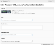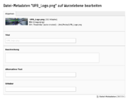 | 20:37, 15. Nov. 2019 | TYPO3 Metadaten2.png (Datei) | 46 KB | {{Information | description = Screenshot of TYPO3 Metadaten Formular | source = Screenshot | date = 15.11.2019 | author = Benutzer:kschierm | permission = {{PD-user|kschierm}} }}Kategorie:Screenshots | 1 | |