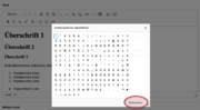 | 15:02, 3. Nov. 2019 | TYPO3 Editor4.png (Datei) | 57 KB | {{Information | description = Screenshot of TYPO3 Editor Sonderzeichen | source = Screenshot | date = 03.11.2019 | author = Benutzer:kschierm | permission = {{PD-user|kschierm}} }}Kategorie:Screenshots | 1 | |