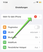 | 11:08, 8. Aug. 2022 | Eduroam-ios-14.png (Datei) | 123 KB | {{Information | description = Screenshot iOS 15 - Einstellungen mehr für dein iPhone | source = Screenshot | date = 08.08.2022 | author = Benutzer:jnk | permission = {{PD-user|jnk}} }}Kategorie:Screenshots | 1 | |