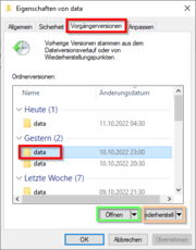 | 10:47, 11. Okt. 2022 | Backupfunktion-Netzwerkspeicher-Windows-03.png (Datei) | 20 KB | {{Information | description = Screenshot of Windows 10 - Ordnereigenschaften - Vorgängerversionen | source = Screenshot | date = 11.10.2022 | author = Benutzer:jnk | permission = {{PD-user|jnk}} }}Kategorie:Screenshots | 1 | |