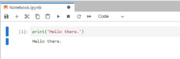 | 16:33, 6. Okt. 2022 | Jupyter-Notebook-8.png (Datei) | 42 KB | {{Information | description = Screenshot Jupyter Notebook - Beispiel Code-Zeile | source = Screenshot | date = 28.09.2022 | author = Benutzer:mfunk | permission = {{PD-user|mfunk}} }}Kategorie:Screenshots | 1 | |
