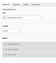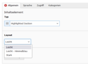 | 11:41, 15. Dez. 2023 | Typo3-highlighted-section-02.png (Datei) | 9 KB | {{Information | description = Screenshot TYPO3 - Inhaltselement Highlighted Section einfügen | source = Screenshot | date = 15.12.2023 | author = Benutzer:jnk | permission = {{PD-user|jnk}} }}Kategorie:Screenshots | 1 | |