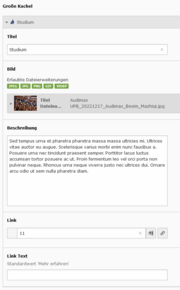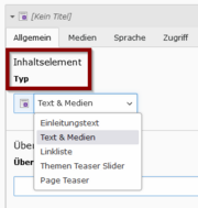 | 10:02, 15. Dez. 2023 | Typo3-kachel-teaser-03.png (Datei) | 6 KB | {{Information | description = Screenshot TYPO3 - Kachel Teaser einfügen | source = Screenshot | date = 15.12.2023 | author = Benutzer:jnk | permission = {{PD-user|jnk}} }}Kategorie:Screenshots | 1 | |