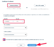 | 08:06, 11. Sep. 2025 | E-Mail-Zertifikat-beantragen-13.png (Datei) | 57 KB | {{Information | description = Screenshot HARICA Generate Certificate - Certificate Settings | source = Screenshot | date = 11.09.2025 | author = Benutzer:jnk | permission = {{PD-user|jnk}} }}Kategorie:Screenshots | 1 | |