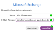 | 15:19, 31. Okt. 2025 | Screenshot Exchange MacOS AD Anmeldung.png (Datei) | 43 KB | {{Information | description = Screenshot Exchange MacOS AD Anmeldung | source = Screenshot | date = 31.10.2025 | author = Benutzer:mariels | permission = {{PD-user|mariels}} }}Kategorie:Screenshots | 2 | |