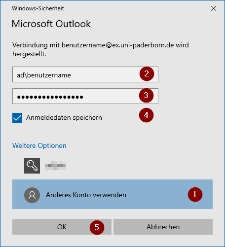 | Description | Screenshot aus Outlook 2019 unter Windows 10 - Exchange Konto hinzufügen 3 |