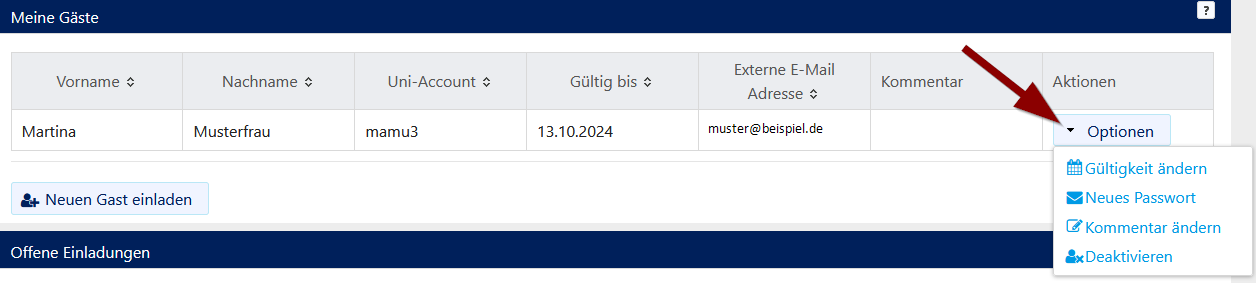| Description | Screenshot ServicePortal - Übersicht Meine Gäste |