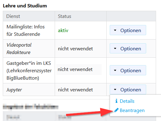 | Description | Screenshot ServicePortal - Jupyter beantragen |
