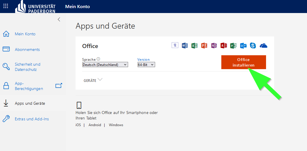 | Description | Screenshot Microsoft 365 - Downloadseite für Microsoft 365 Apps |