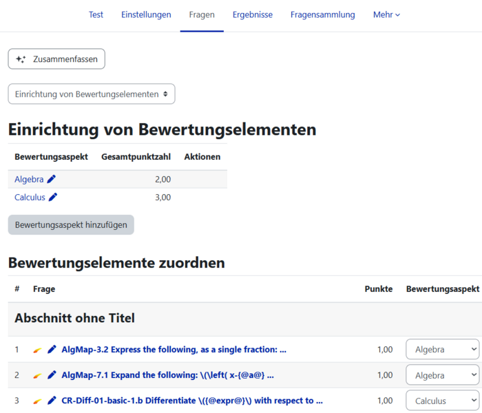 | Description | Screenshot Moodle Bewertungselemente einrichten |