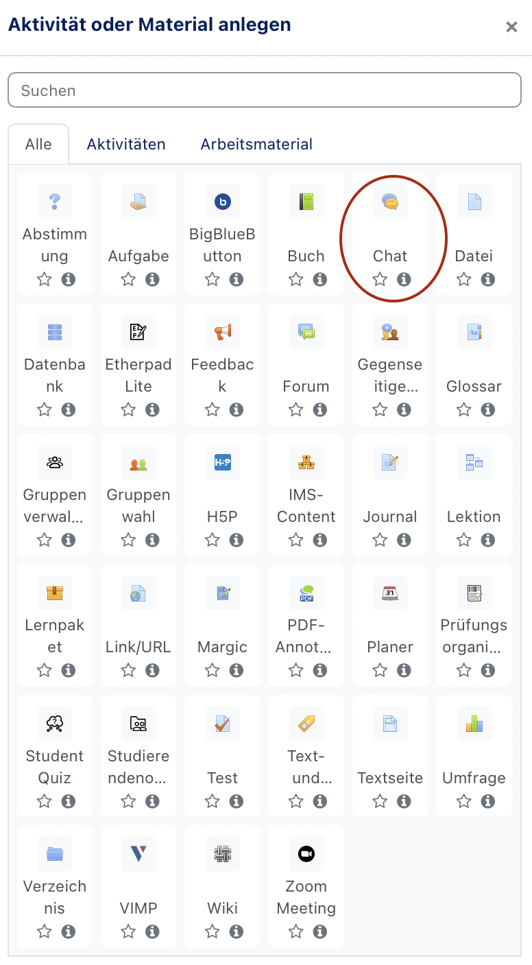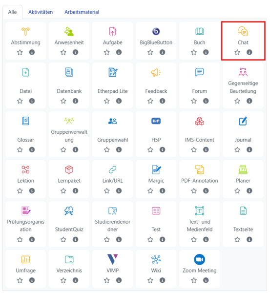 aktuell08:19, 23. Jul. 2025Vorschaubild der Version vom 08:19, 23. Jul. 2025782 × 848 (86 KB)Mfunk (Diskussion | Beiträge){{Information | description = Screenshot Moodle Chat anlegen | source = Screenshot | date = 23.07.2025 | author = Benutzer:mfunk | permission = {{PD-user|mfunk}} }}Kategorie:Screenshots