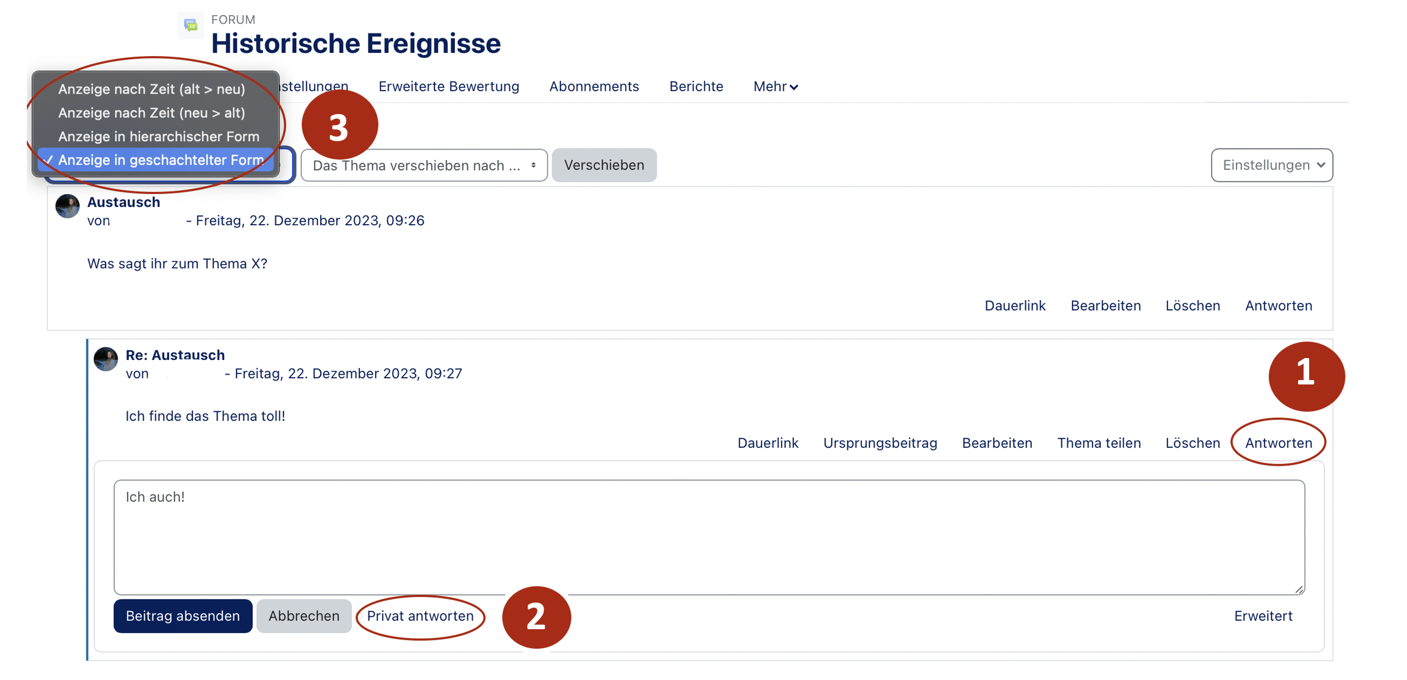 | aktuell | 09:16, 23. Jul. 2025 | 1.025 × 491 (119 KB) | Mfunk (Diskussion | Beiträge) | {{Information | description = Screenshot Moodle Forum Beispiel Beitrag | source = Screenshot | date = 23.07.2025 | author = Benutzer:mfunk | permission = {{PD-user|mfunk}} }}Kategorie:Screenshots | |