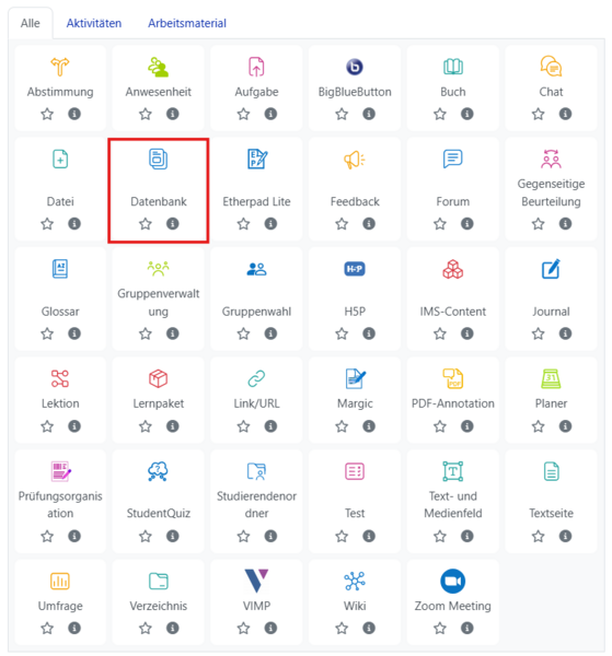 | aktuell | 12:13, 23. Jul. 2025 | 785 × 842 (85 KB) | Mfunk (Diskussion | Beiträge) | {{Information | description = Screenshot Moodle Datenbank anlegen | source = Screenshot | date = 23.07.2025 | author = Benutzer:mfunk | permission = {{PD-user|mfunk}} }}Kategorie:Screenshots | |