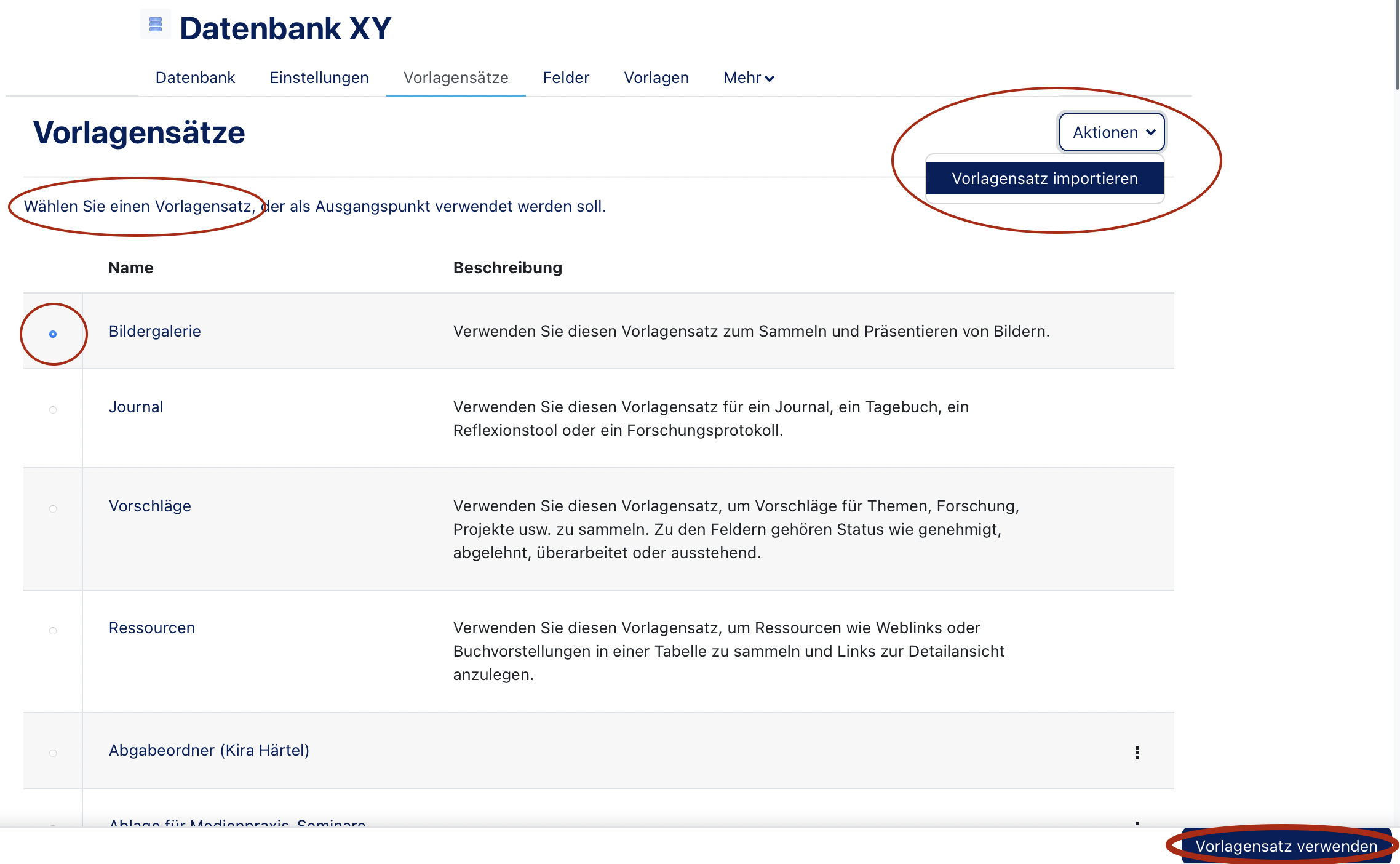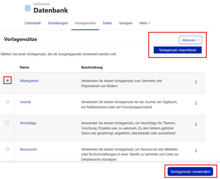 Datenbank Vorlagensätze