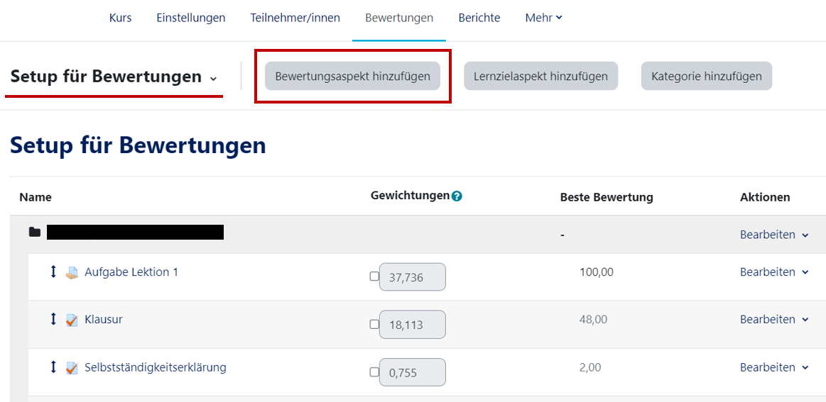 | aktuell | 12:39, 23. Jul. 2025 | 1.227 × 711 (36 KB) | Mfunk (Diskussion | Beiträge) | {{Information | description = Screenshot Moodle Bewertungskategorien | source = Screenshot | date = 23.07.2025 | author = Benutzer:mfunk | permission = {{PD-user|mfunk}} }}Kategorie:Screenshots | |