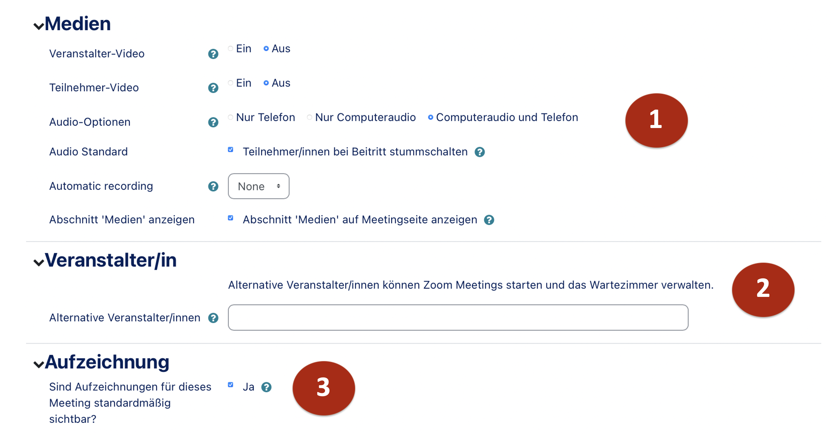 | Description | Zoom Meeting Einstellungen |