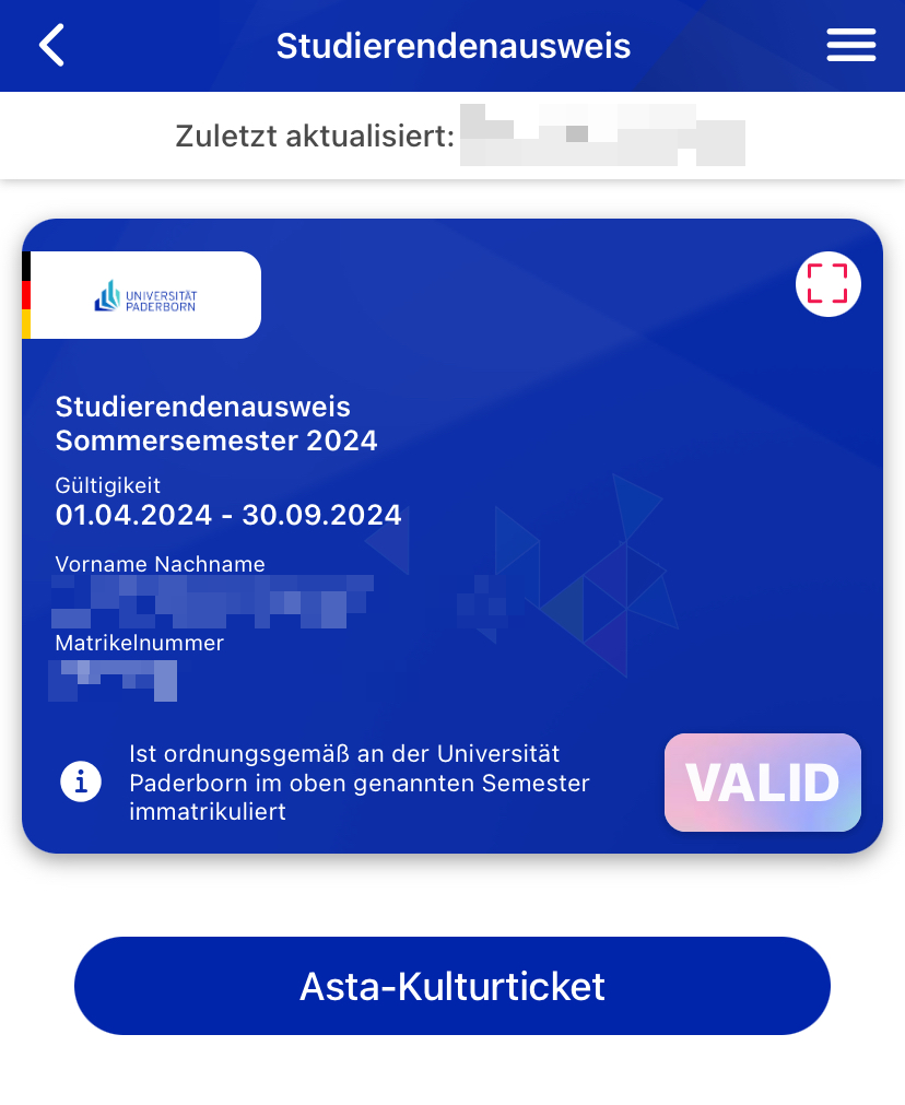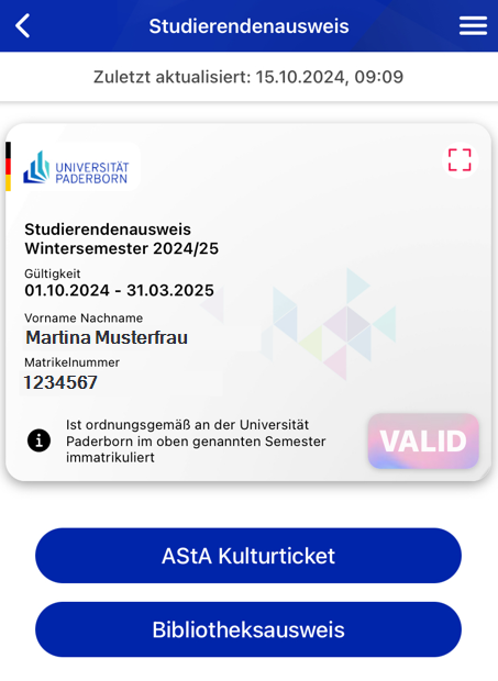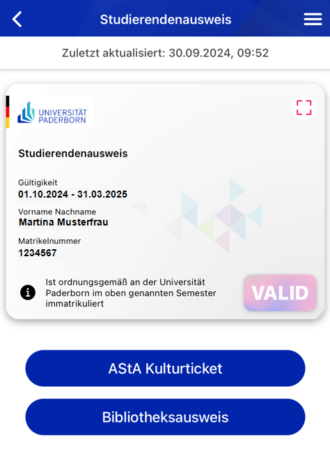 | Description | Screenshot UPB-App - Digitaler Studierendenausweis |