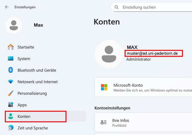 Windows+i - Falls unter "Konto" die E-Mail-Adresse benutzername@ad.uni-paderborn.de hinterlegt ist, ist ihr Konto betroffen.