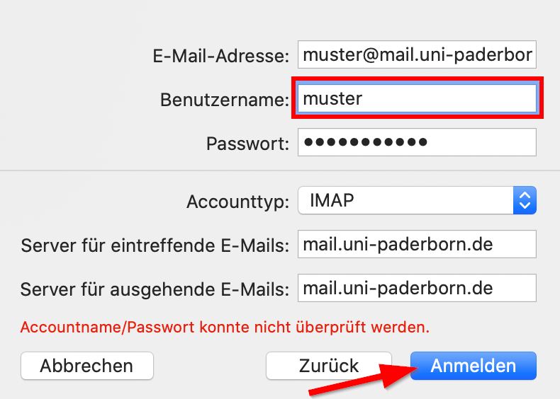 Description Screenshot of Mail einrichten Daten eingeben 2