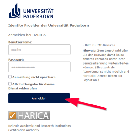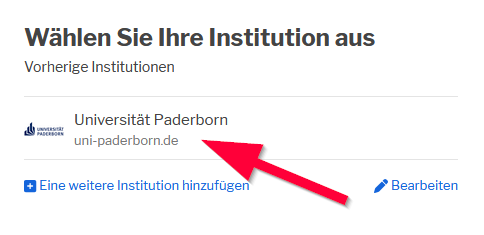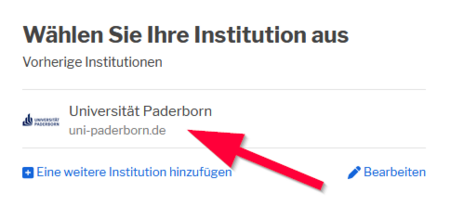 • Bei zukünftigen Besuchen können Sie als Institution direkt "Universität Paderborn" auswählen.