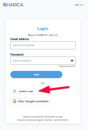 • Sie werden anschließend erneut in das Dashboard von HARICA geleitet.