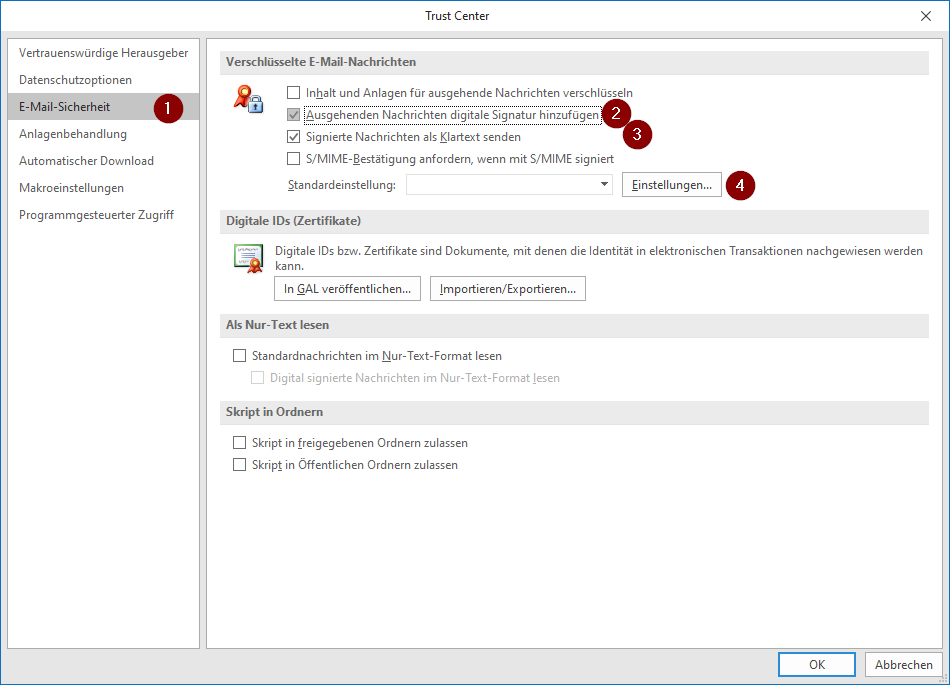 | Description | Screenshot aus Outlook 2019 unter Windows 10 - E-Mail Zertifikat einrichten 3 |