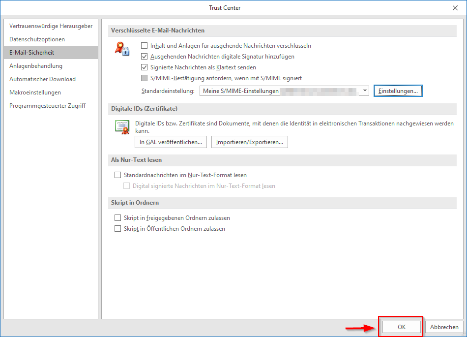 | Description | Screenshot aus Outlook 2019 unter Windows 10 - E-Mail Zertifikat einrichten 6 |