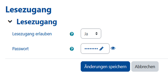 Hinweis: Sobald der Lesezugang für einen Kurs freigegeben ist, kann jede Person mit Link zum Kurs sich mit Lesezugang anmelden und hat Zugriff auf den Kurs. Somit wird ein Kurs und dessen Inhalte weltweit einsehbar. Dementsprechend sei an dieser Stelle auf den Schutz von personenbezogenen Daten verwiesen. Daten, die dies betrifft, sollten also für den Lesezugang verborgen werden.