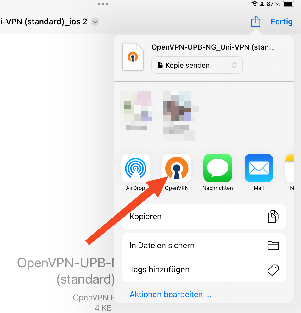 Description Screenshot Safari iOS 17 - Netzwerkzertifikat in OpenVPN öffnen