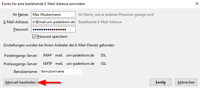 | Description | Screenshot aus Thunderbird unter Windows 10 - Mail einrichten |